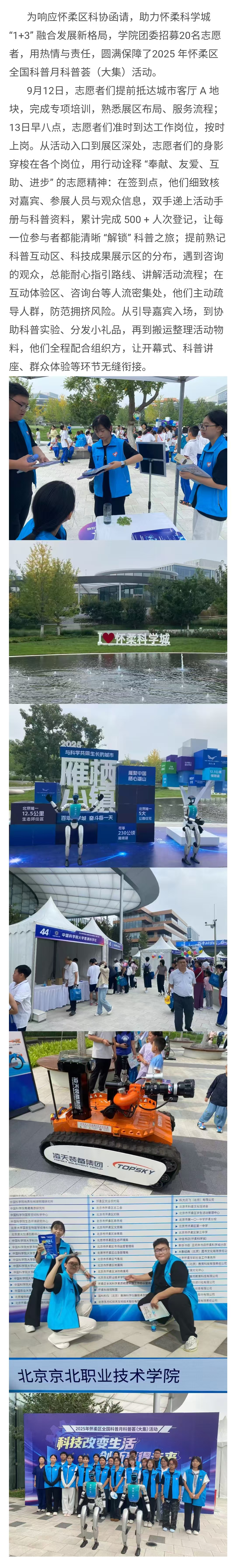 青春助科普!京北职院志愿者点亮怀柔区全国科普月