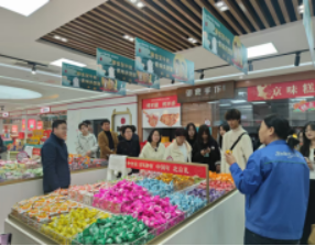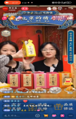 第二站来到了北京御食园食品食品股份有限公司。御食园第四代非遗传承人为大家讲解非遗工艺和产品,带领师生们参观园区工厂和工场直销店面,深入了解产品生产流程和质量把控环节。御食园电商运营主管带领师生走进企业直播间,介绍了直播运营知识、直播安排和内容策划等,介绍抖音直播流量玩法、产品展示要点、直播间必备话术等基础知识。互动实操环节中,学生们使用御食园直播账号亲自试播,体验了直播全过程。